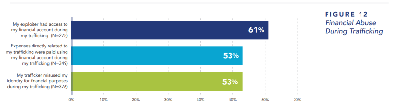 By gaining access to bank accounts, credit cards, and personal identification, traffickers can drain resources, take out loans, pay for hotels, or even apply for government benefits, all in the survivor’s name.